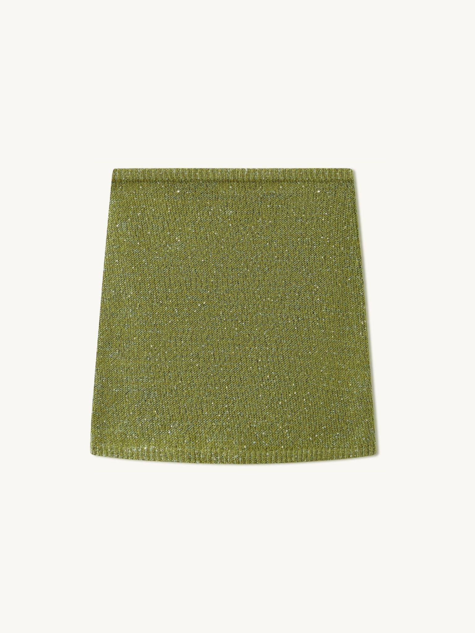 The Ana Mini Skirt by ASTA RESORT in Olive Oil Sequin.