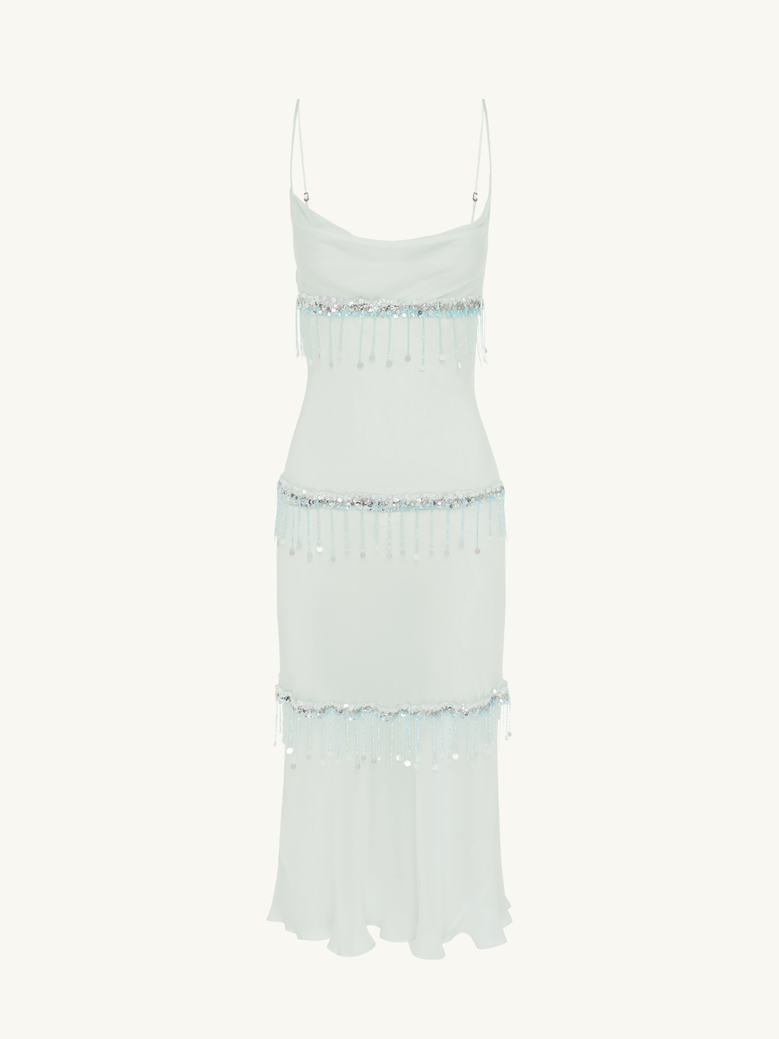 The Layla Handed Beaded Dress by Asta Resort in Ice Blue.