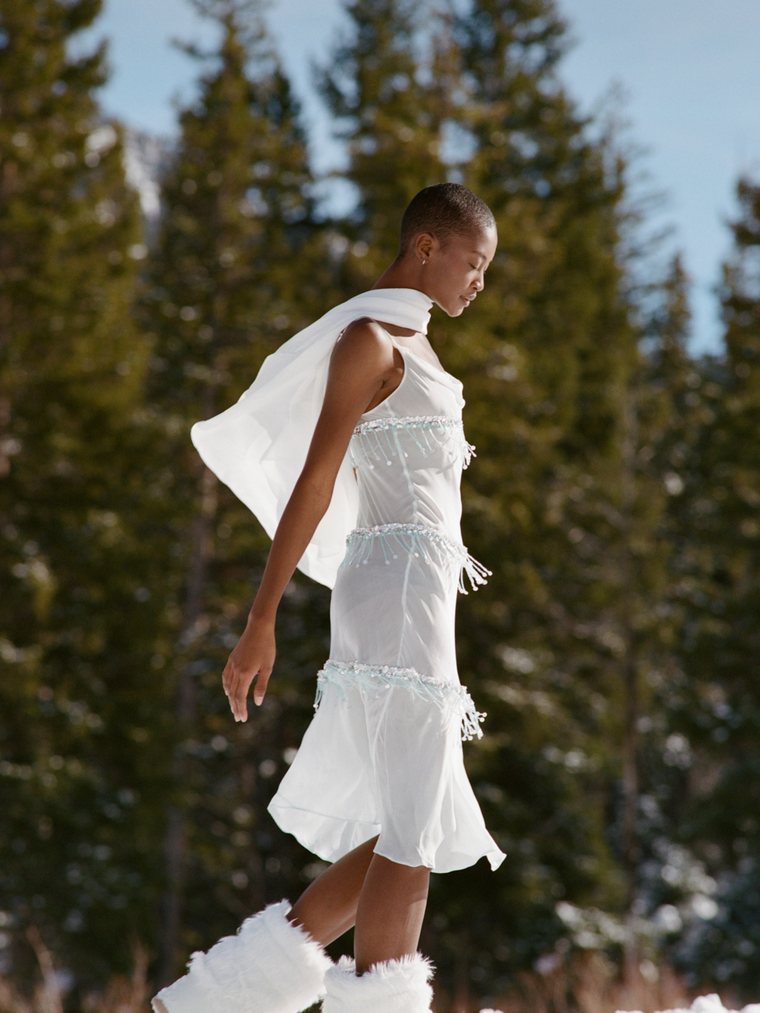A special edition piece to treasure from "THE GETAWAY" Resort '25 collection. Featuring a myriad of cascading trims that take flight off a base of chiffon, the delicate cocktail dress pays homage to ASTA's signature sparkling identity.