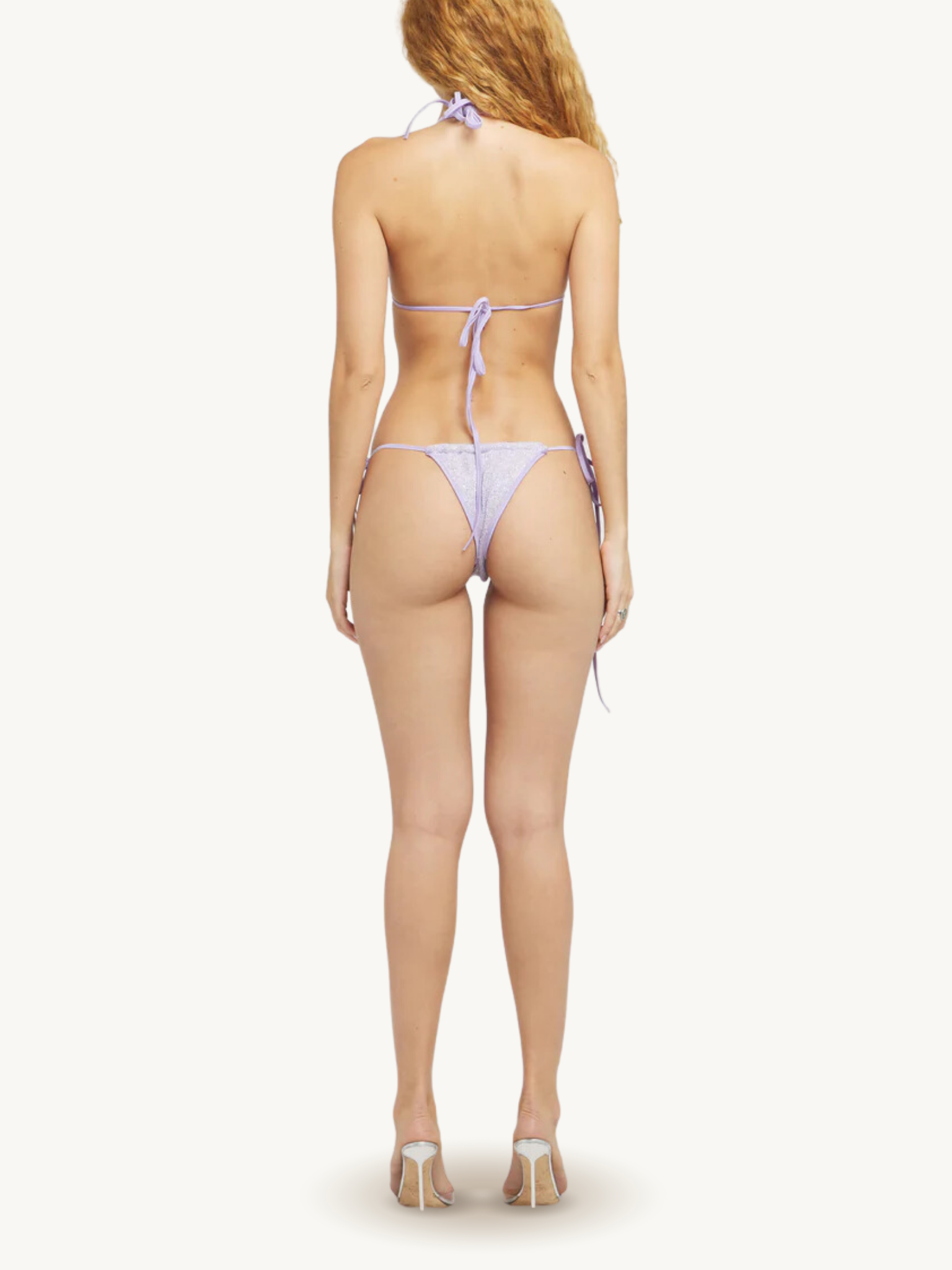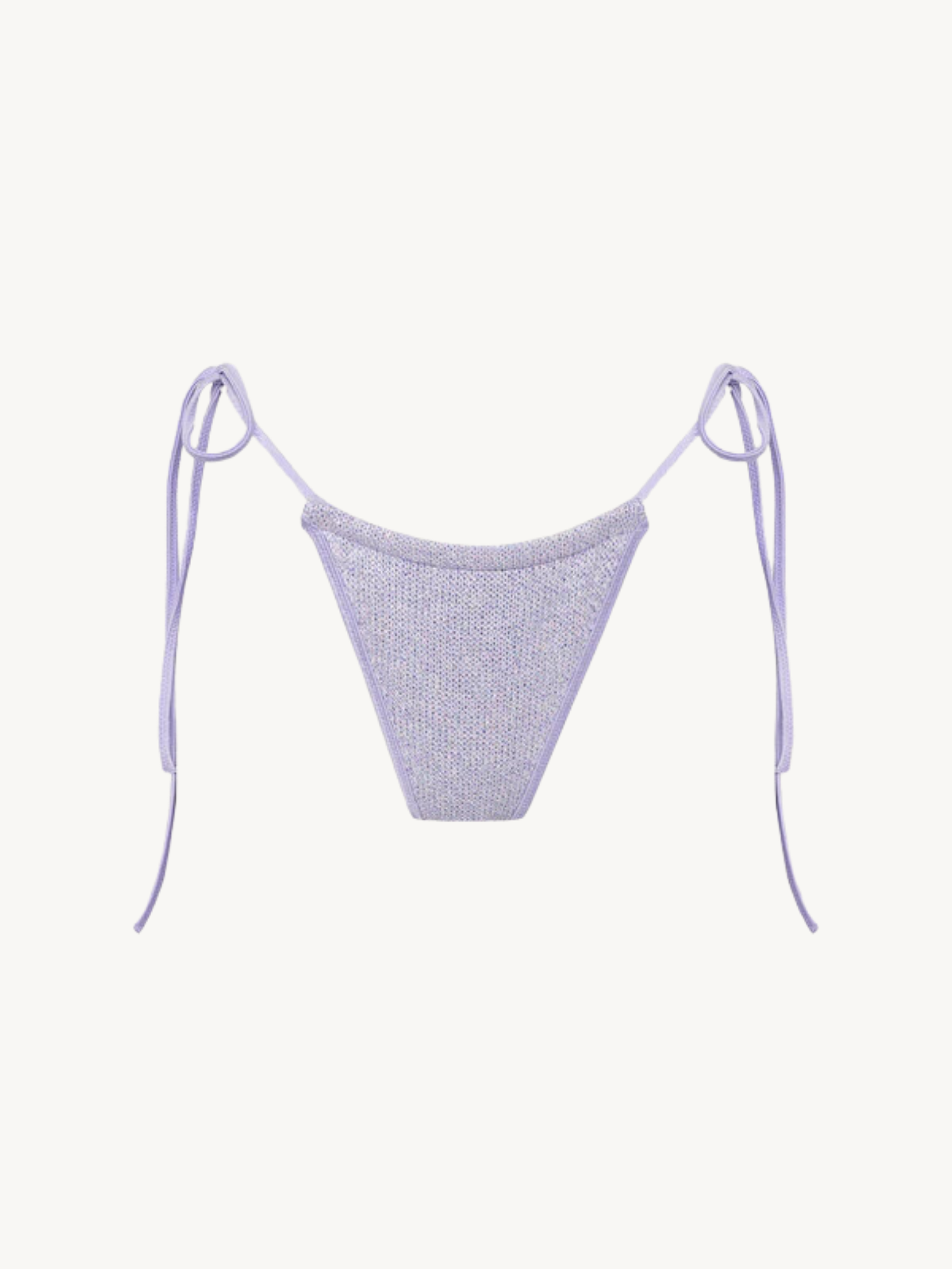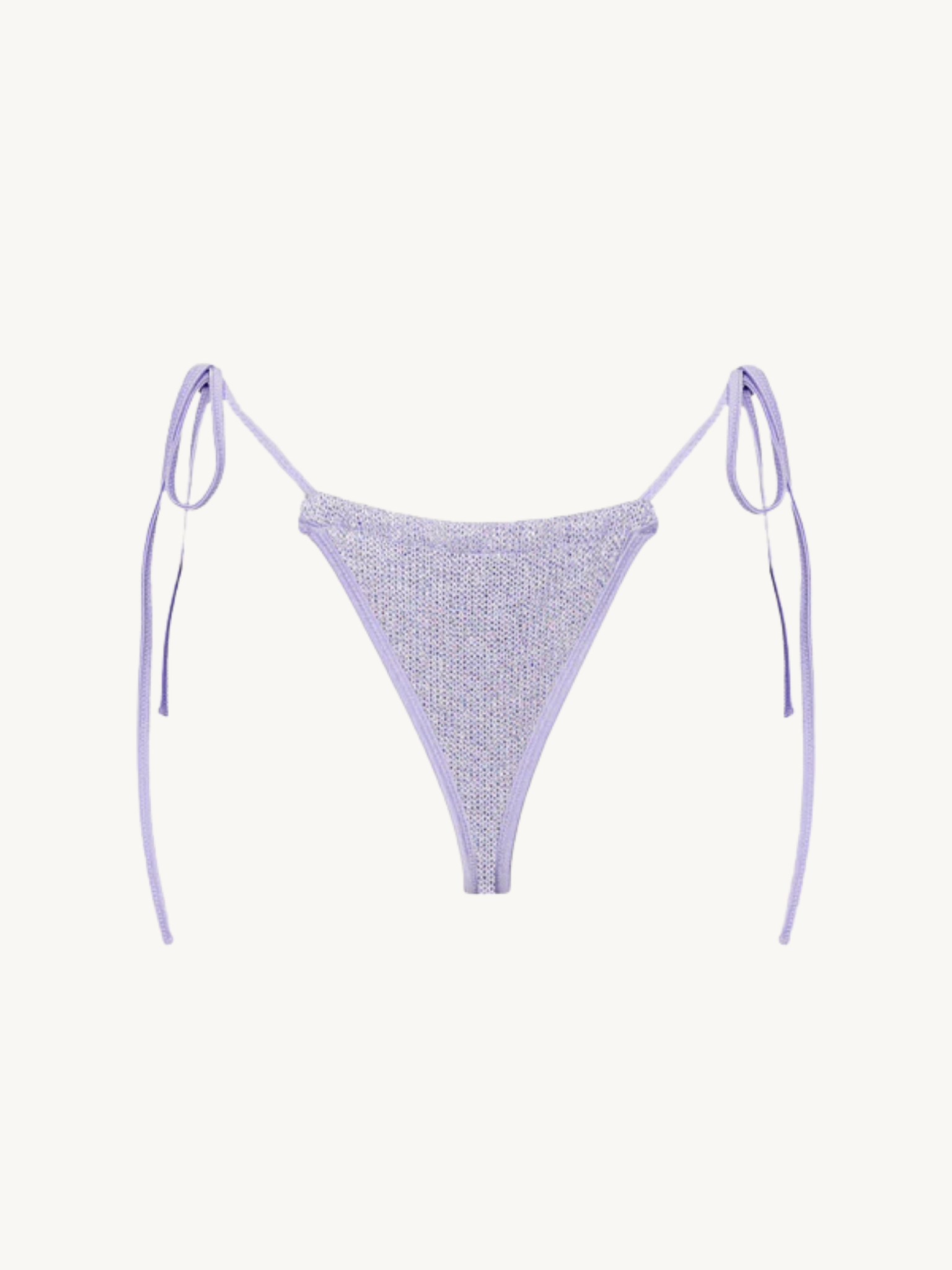 The Lio Bikini Bottom in Lavender Sequin by ASTA RESORT. An elevated sliding string triangle style layering sequin-spun yarn with Italian lycra, designed to sparkle by the sea.