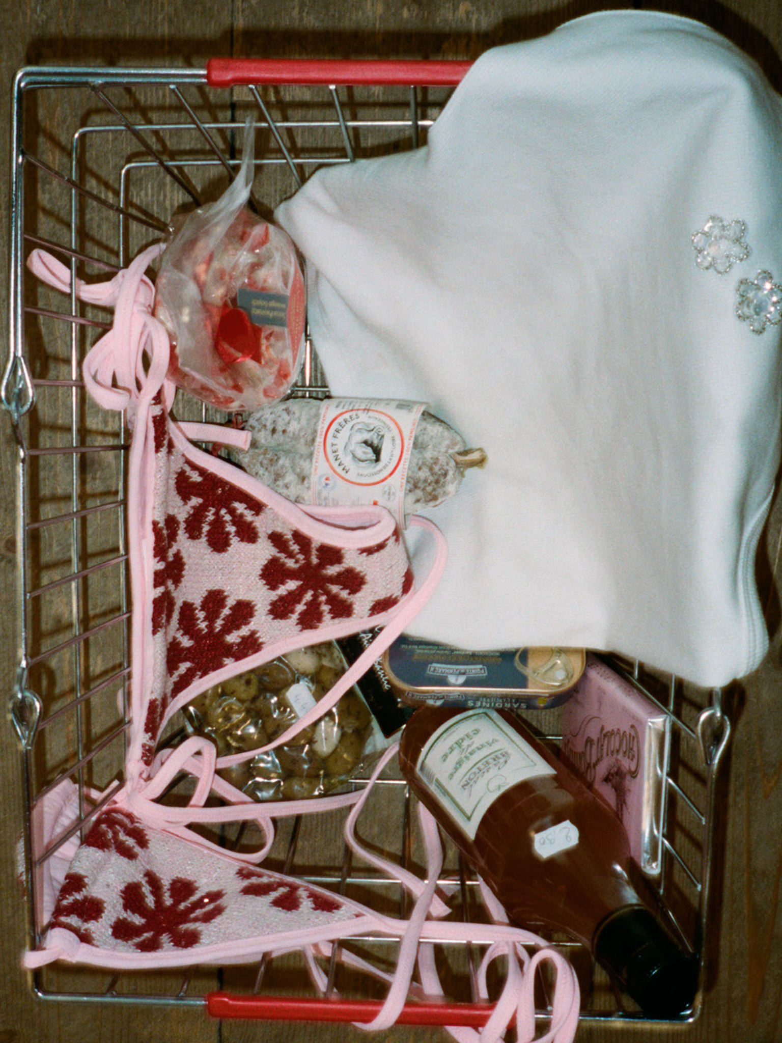 Knitted panels made from a cotton based yarn, spun with micro-sequins. Fully lined and trimmed with lustrous Italian lycra for a silky smooth wear.