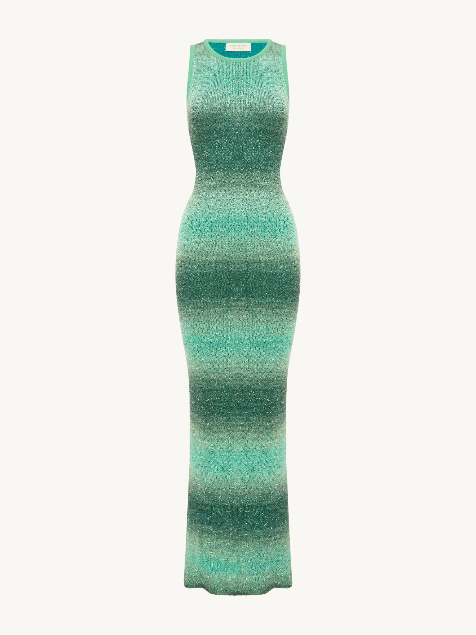 The Natalia Gradient Dress in Palm Green Sequin by ASTA RESORT.