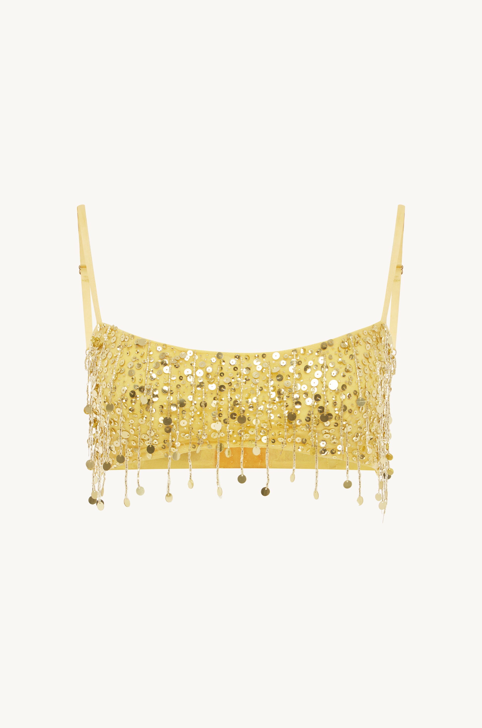 A myriad of sparking sequins and cascading beads take flight. The bralette top features a hook and eye back closure and adjustable Silk Linen straps. As part of the signature ready to wear collection paying homage to Italian eleganza and ASTA's signature sparkling identity.