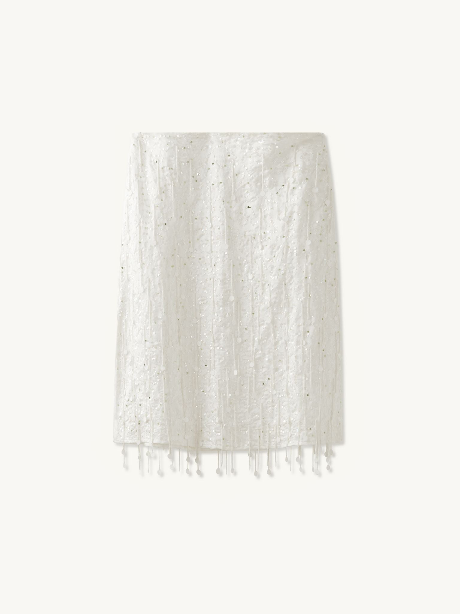 The Fidan Hand Beaded Midi Skirt in Salt.
